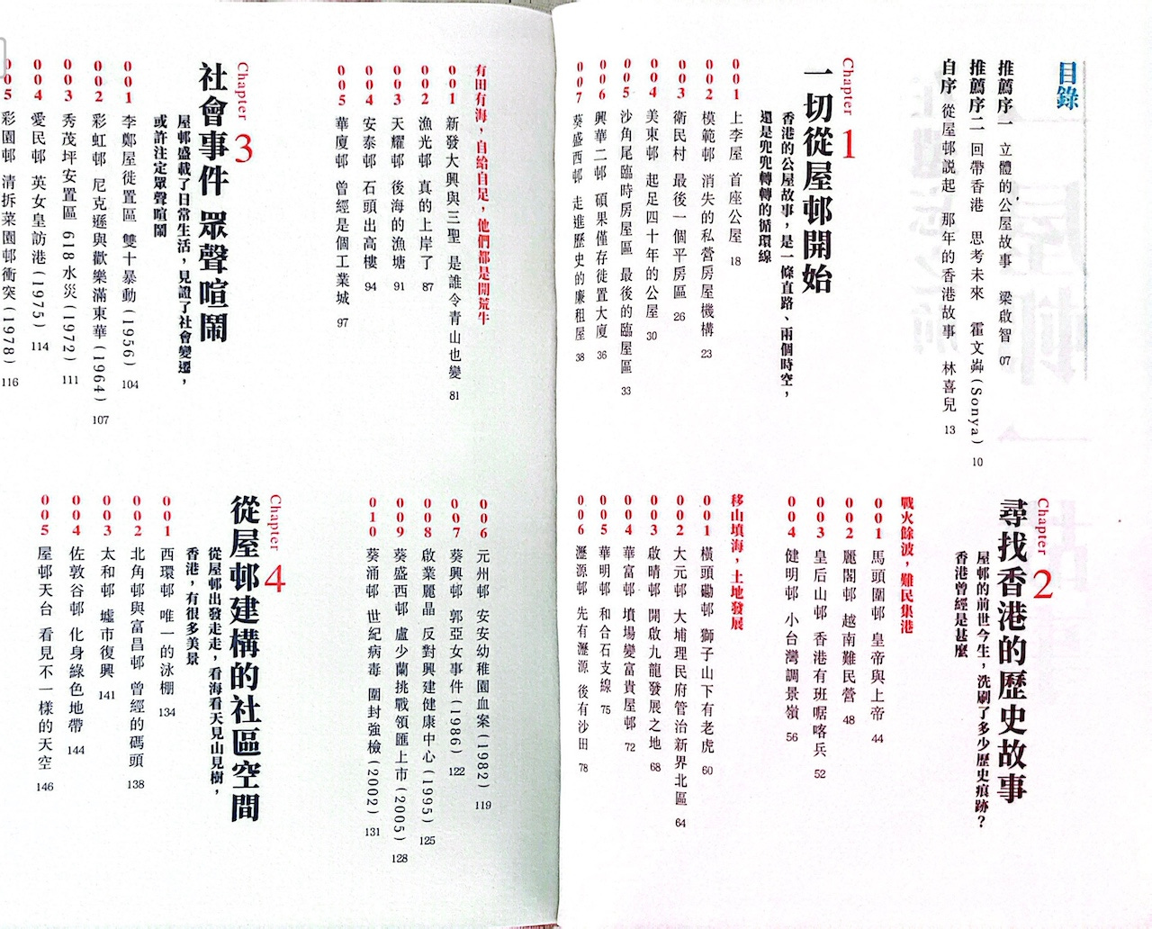 編輯提出的例子是一個角度,我在想如何可以透過屋邨去說說香港的歷史,當然某些屋邨是不能不說的,例如華富邨、彩虹邨,但這些當紅屋邨還有沒有新角度?也有很多已消失的屋邨也很值得列入,像上李屋邨,因為這才是第一個公屋,而不是石硤尾美荷樓。所以就是從自己熟悉的出發,也看看其他人都寫了甚麼,最後想出一個結構,以「屋邨發展史」開展,然後是「屋邨前身」,帶出香港曾經是甚麼,再到「社會事件」,回顧發生在屋邨,影響社會的大事; 跟著是軟性一點的社區空間、屋邨設施配套,嘗試展示香港人的日常生活。總共提到差不多四十個屋邨。