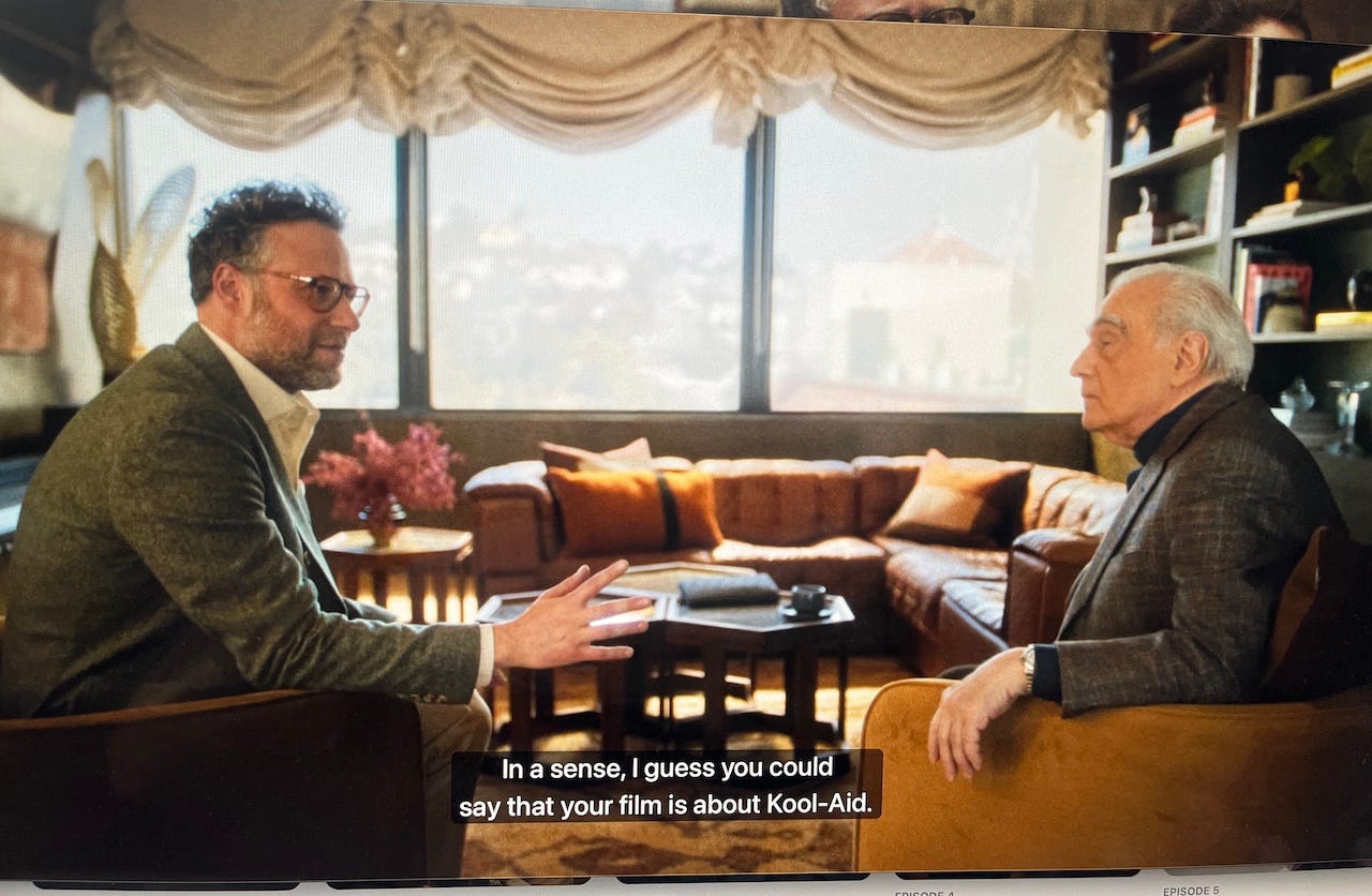 半小時的喜劇是看得很過癮,說話很快節奏很快,每集也有一鏡到底的部分,特別是「The Oner」就是用一鏡去拍一鏡的故事,真是雙重效果雙重滋味。不過有時那些呯呯嘭嘭的配樂刻意製造緊張效果,就覺得有點煩厭。此劇厲害之處是每集都有明星、監製、導演登場客串,由第一集的Martin Scorsese、Charlize Theron,Bryan Cranston,到「The Golden Globes」一集台上台下都出現Adam Scott、台上領獎鏡頭遠遠看到的Jean Smart,就連Netflix CEO Ted Sarandos 都現身,原來Seth Rogan 跟他是好友,所以不介意現身競爭對手平台上。Seth 的回贈方法可能就是劇中的金球獎,差不多每個得獎者也有多謝Netflix,多謝Ted Sarandos,事實上這也就是劇情。Matt 一方面很妒忌,一方面他又對阿媽說很多人會在台上多謝他,於是為了要導演Zoe Kravitz 上台多謝他,出盡八寶。而首尾也有出現的CEO Griffiin,「Mr. White」Bryan Cranston演喜劇相當精彩,最後一集被迷魂,變成醉酒佬玩串Vegas。 除了Seth Rogan 外,他的同鄉Catherine O’ Hara也演出一角,不過戲份不算多,有點浪費了這位「Schitts Creek」 的媽媽。